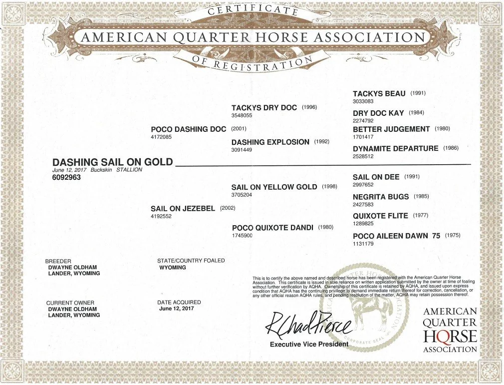 Dashing Sail on Gold $15,000Please contact Dwayne Oldham, 307-349-3610 for more information. * Dashing Sail On Gold ✳︎ * Dashing Sail On Gold ✳︎ * Dashing Sail On Gold ✳︎